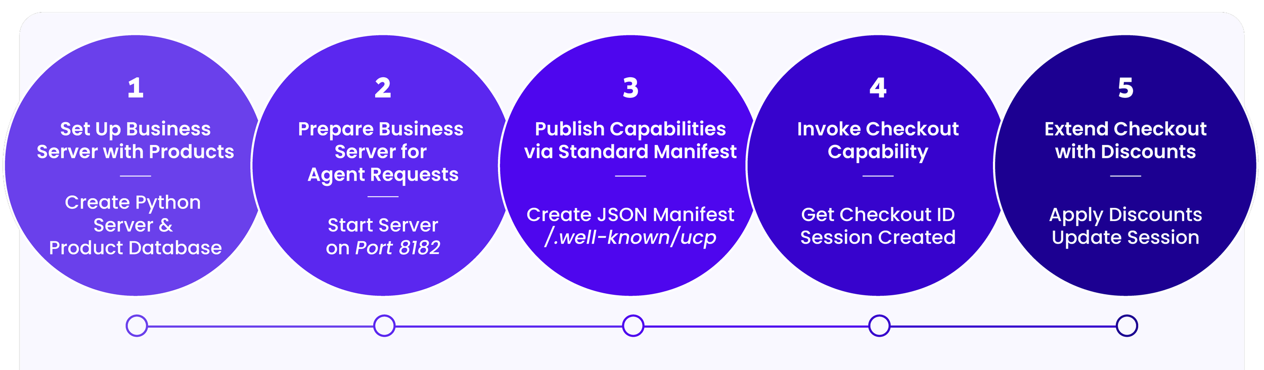 Set up a Business Server with Products: A sample business store can be created using the provided Samples repository, including a Python server for Business APIs and a UCP SDK with sample product data. This forms the backend that agents can interact with.